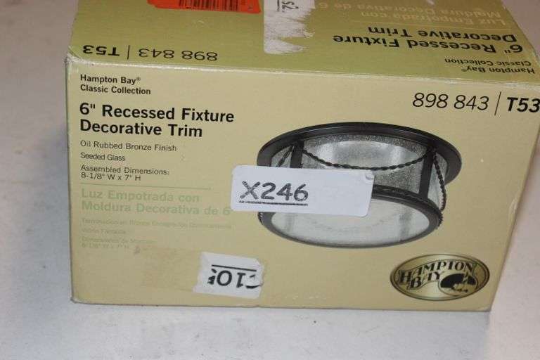 LOT 246 - Hampton Bay 6 In. Oil Rubbed Bronze Recessed Deco Trim With Seeded Glass Shade Retail:$100