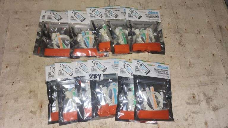 LOT 284 - TAGIT TWO SYNC + CHARGE APPLE CABLES 3FT & 6FT, TWO APPE CERTIFIED MFI LIGHTNING CABLES WITH 8 PERSONALIZED TAGS