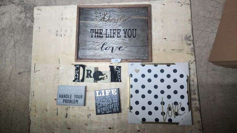 LOT 249 - HOME DÉCOR ART ASSORTMENT OF LIVE, LIFE AND LOVE, SOLD BY PIECE