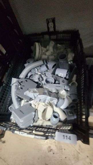 LOT 114 - ASSORTED BIN OF PVC COUPLINGS AND MUCH MORE
