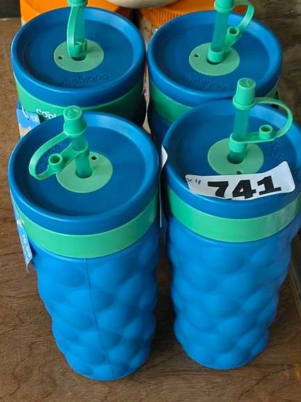 LOT 741 - Coolgear Pebble Grip Plastic Tumbler with Straw. A durable, double-wall insulated plastic tumbler with a textured pebble grip, a screw-on lid, and a reusable straw for cold beverages (available in assorted colors). - $10 - 15