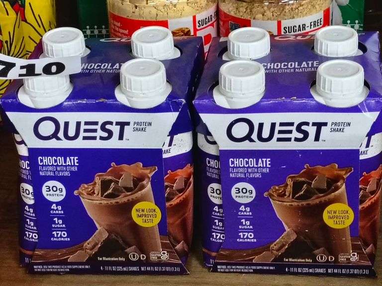 LOT 710 - Quest Chocolate Protein Shake (4-Pack). A ready-to-drink chocolate protein shake that provides 30g of protein, 4g of carbs, and 1g of sugar per serving. - $9 - 12