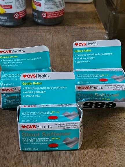 LOT 685 - CVS Health Stool Softener Docusate Sodium 100 mg Softgels, 25 Count. A gentle laxative containing Docusate Sodium that works gradually to provide relief from occasional constipation. - $6.99