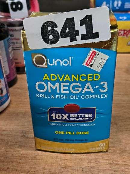 LOT 641 - Qunol Advanced Omega-3 Krill & Fish Oil Complex, 60 Softgels. A dietary supplement featuring a blend of krill and fish oil with hydro-emulsifying technology for better bioavailability. - $20 - 25