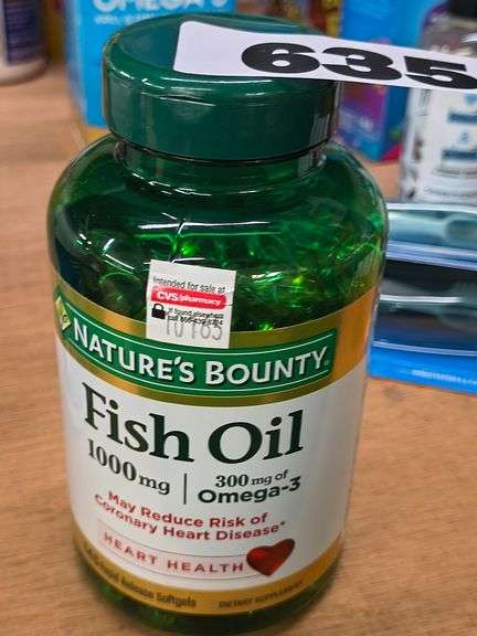 LOT 635 - Nature's Bounty Fish Oil 1000 mg Softgels, 145 Count. A dietary supplement containing 300 mg of Omega-3 to support heart health. - $12 - 18