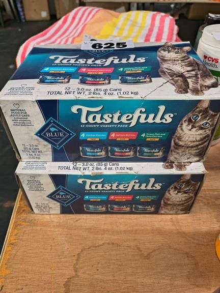 LOT 625 - Blue Buffalo Tastefuls Paté Wet Cat Food Variety Pack, 12-Count. A 12-count variety pack of natural paté-style wet food for adult cats, featuring chicken, salmon, and ocean fish & tuna entrées. - $13.99