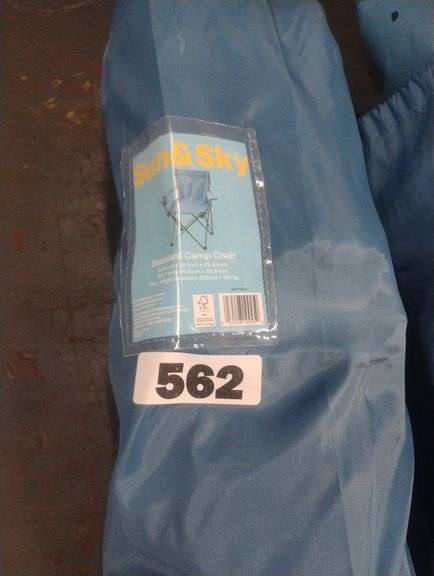 LOT 562 - Sun & Sky Standard Camp Chair. A portable, foldable chair for camping and outdoor activities with a maximum weight capacity of 225 lbs. - $10 - 15