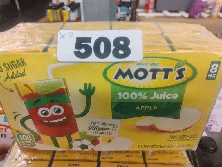 LOT 508 - Mott's 100% Apple Juice Boxes, 8-Pack, 6.75 fl oz. An 8-pack of 100% apple juice boxes with no added sugar, providing 100% of the daily value of Vitamin C per serving. - $3.50 - 4.50