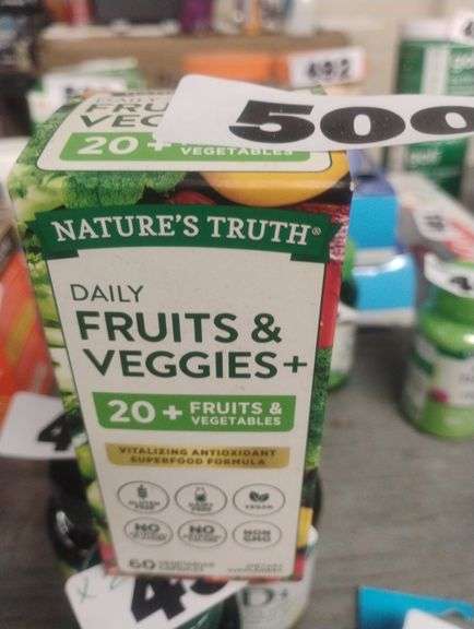 LOT 500 - Nature's Truth Daily Fruits & Veggies+ 60 Vegetarian Capsules. A dietary supplement featuring a vitalizing antioxidant superfood formula derived from over 20 different fruits and vegetables. - $9.00 - 14.00