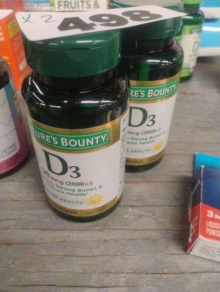 LOT 498 - Nature's Bounty Vitamin D3 Softgels, 50 mcg (2000 IU). A vitamin supplement designed to support strong bones and immune health. - $4.98