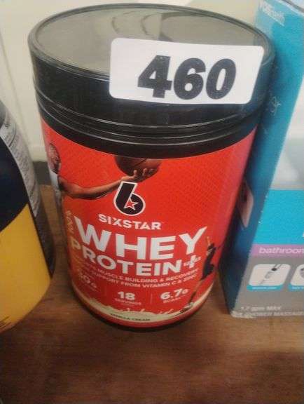 LOT 460 - Sixstar Whey Protein+, Vanilla Cream. A whey protein powder supplement designed to support muscle building and recovery after workouts. - $15 - 20