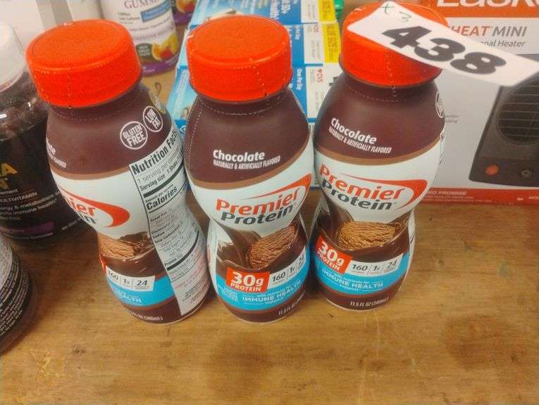 LOT 438 - Premier Protein High Protein Shake, Chocolate. A ready-to-drink chocolate-flavored shake that provides 30g of protein with nutrients for immune health support. - $2.00 - 3.00