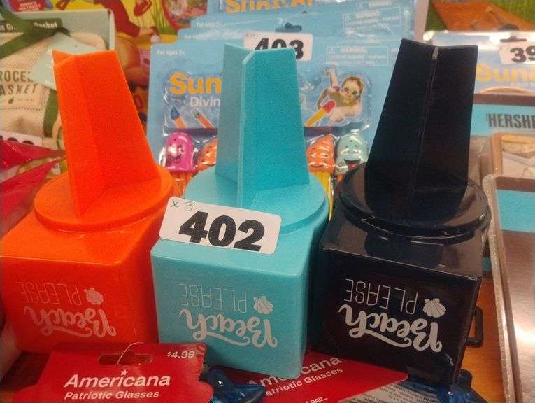 LOT 402 - Beach Please Novelty Nail Polish Shaped Tumbler. A novelty drink tumbler designed to look like an oversized bottle of nail polish (available in assorted colors). - $10 - 15