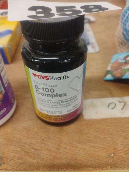 LOT 358 - CVS Health Timed Release B-100 Complex, 60 Tablets. A dietary supplement designed to support energy production, as well as heart, nervous system, and immune health. - $15.79