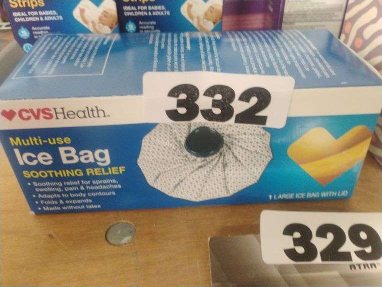 LOT 332 - CVS Health Multi-use Ice Bag, Large. A reusable, latex-free fabric bag designed to hold ice for soothing relief from sprains, swelling, pain, and headaches. - $10 - 15