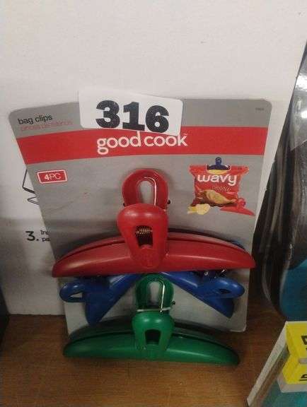 LOT 316 - Good Cook 4-Piece Bag Clips. A set of four spring-loaded plastic clips designed to securely reseal bags and keep food fresh (available in assorted colors). - $3 - 7
