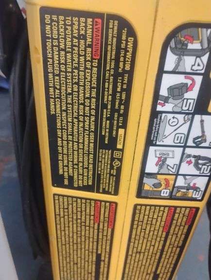 LOT 293 - DeWalt DWPW2100 Electric Pressure Washer. A corded electric pressure washer that delivers 2100 PSI and 1.2 GPM for various outdoor cleaning tasks. - $240 - 260