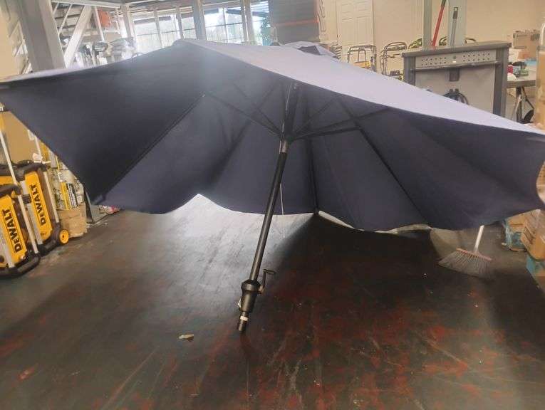LOT 291 - Outdoor Patio Market Umbrella. A large outdoor umbrella designed with a tilt mechanism to provide adjustable shade for a patio or garden area. - $50 - 100