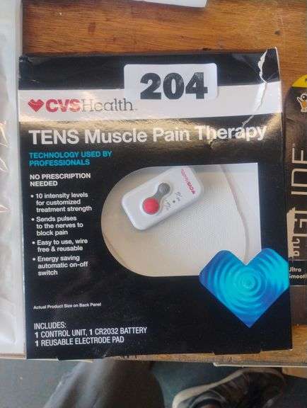 LOT 204 - CVS Health TENS Muscle Pain Therapy. A wire-free, reusable TENS unit designed to send electrical pulses to the nerves to block muscle pain. - $30 - 35