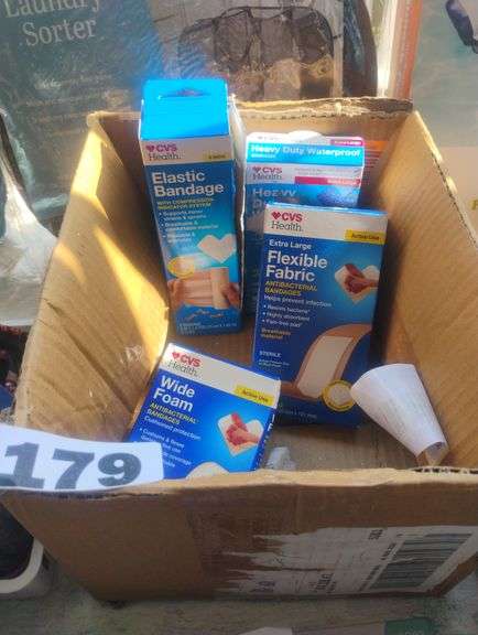 LOT 179 - Assortment of CVS Health First-Aid Supplies. A collection of various CVS Health brand bandages and wraps, including elastic, fabric, waterproof, and foam types for treating minor injuries. - $25 - 35