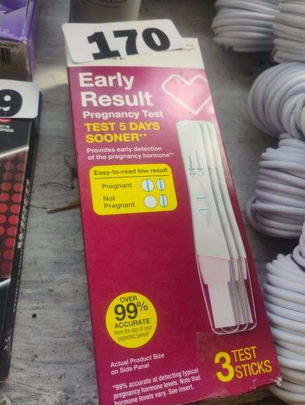 LOT 170 - Store Brand Early Result Pregnancy Test (3 Count). An at-home test kit that provides early detection of the pregnancy hormone up to five days sooner than your missed period. - $8 - 15