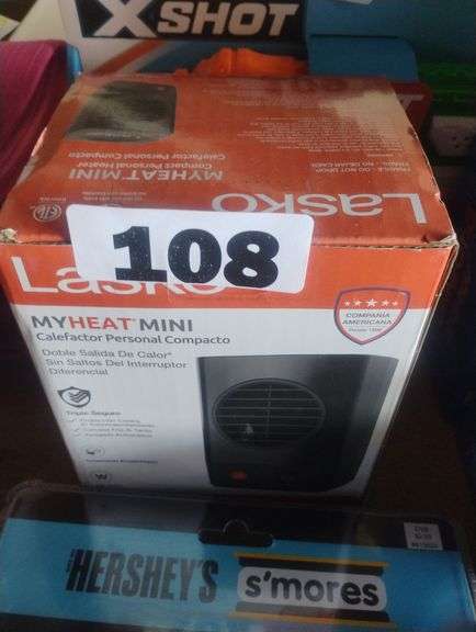 LOT 108 - Lasko MyHeat Mini Personal Heater. A compact 200-watt ceramic personal heater designed for providing direct warmth to a small space. - $20 - 25