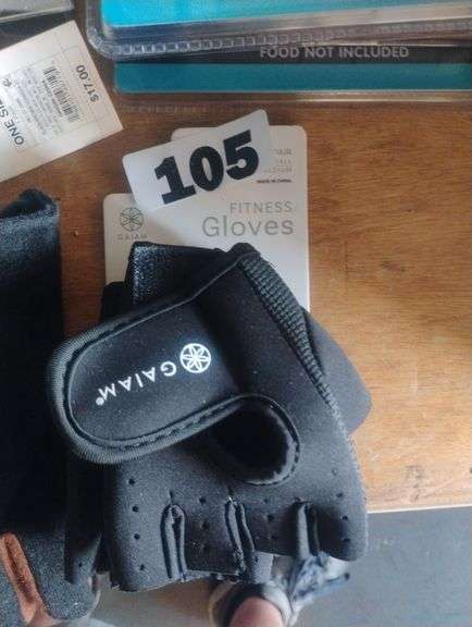 LOT 105 - Gaiam Fitness Gloves. A pair of fingerless gloves designed to protect hands and improve grip during workouts. - $17.00