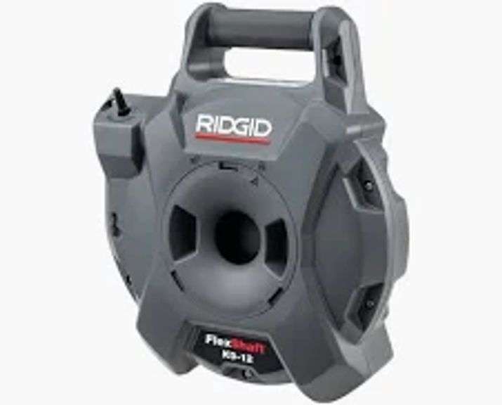 LOT 63 - RIDGID FlexShaft Wall-To-Wall Drain Cleaner K9-12 (Cat. No. 74978). A drain cleaning machine powered by a cordless drill that uses a flexible, enclosed cable with an expanding chain knocker to clear blockages in pipes up to 2 inches wide. - $229.00