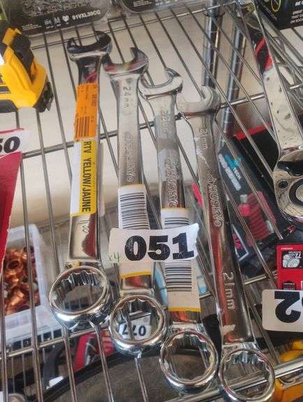 LOT 51 - Husky Combination Wrench. A chrome-finished steel hand tool with an open-end and a 12-point box-end for tightening or loosening fasteners (available in assorted sizes). - $10 - 15