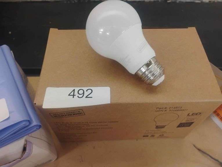 LOT 492 - Maintenance Warehouse 9 Watt A19 Cool White LED Bulb. A 9-watt, A19-shaped LED bulb that provides 800 lumens of cool white light. - $2 - 4