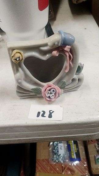 LOT 128 - Heart-Shaped Porcelain Floral Picture Frame