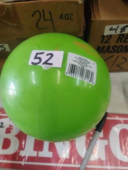 LOT 52 - Hedstrom Sport 7-inch Playball. This is a vibrant green inflatable ball designed for children's active play and bouncing activities. - $7.00
