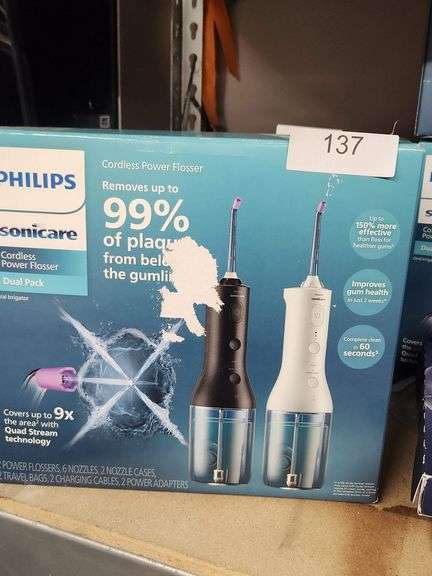 LOT 137 - NEW SEALED PHILIPS SONICARE CORDLESS POWER FLOSSER DUAL PACK RETAIL $129 COSTCO