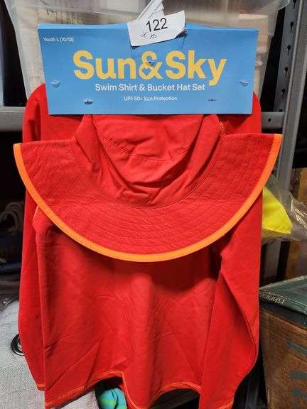 LOT 122 - SON AND SKY SWIM SHIRT AND BUCKET HAT SET SMALL MEDIUM AND LARGE