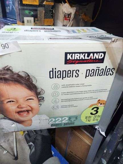 LOT 90 - KIRKLAND 222 DIAPERS SIZE 3 $40 COSTCO