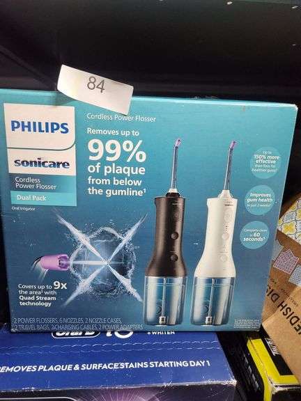 LOT 84 - NEW SEALED PHILIPS SONICARE CORDLESS POWER FLOSSER DUAL PACK RETAIL $129 COSTCO