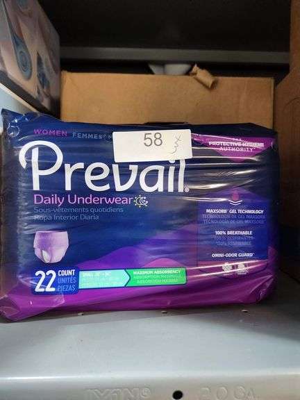 LOT 58 - PREVAIL DAILY UNDERWEAR SIZE SMALL 22 COUNT