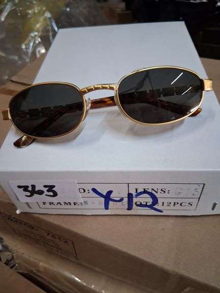 LOT 363 - Vintage Style Oval Gold Frame Sunglasses. These sunglasses feature dark oval lenses set in a gold-toned metal frame with tortoiseshell patterned temples, providing sun protection. - $25.00