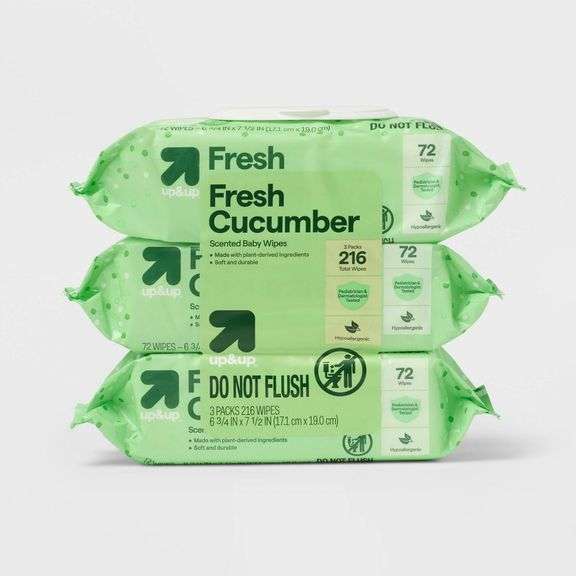 Made with purified water and plant-based ingredients, including aloe, calendula, cucumber, licorice and vitamin E, up&up? fresh cucumber cloth-like baby wipes are gentle enough for use on baby?s face, hands and bottom. These wipes are hypoallergenic and made without alcohol, parabens, phthalates and phenoxyethanol. The wipes are textured for better cleaning.