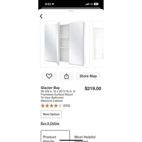 Glacier Bay Bathroom Medicine Cabinet Rectangle Frameless Tri-View Mirror White.Hole in the back wood