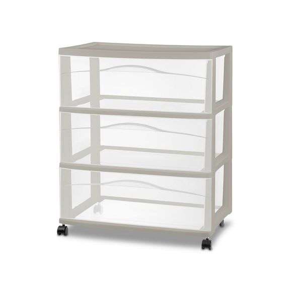 The Brightroom Wide 3 Drawer Cart offers a practical and versatile storage solution for any room of the home! Organize a variety of lightweight household items where they are most frequently used - in the bedroom, kitchen / pantry, bathroom, craft room, nursery or dorm room. It can even double as a nightstand, dresser or way to make efficient use of closet space. Neatly store anything from clothing, accessories, and towels to craft supplies, health and beauty items, toys, and more. The drawer design features a modern aesthetic and sleek profile, and is clear on all sides, allowing contents to be easily identified, while keeping them contained. The drawer stop feature prevents drawers from being removed accidentally. When storing items away, be mindful of the weight in each drawer and don't overload. Add the casters to create a rolling storage option, and easily move the Drawer Cart wherever it is needed. It's easy to get organized and keep your living spaces clutter-free with the Wide 3 Drawer Cart! The over
