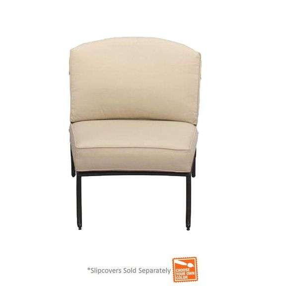 The Edington Center Armless Section Chair can be used on its own or placed with the Right or Left Arm Section Chairs to form a two-seat or three-seat sectional. You can also use multiple center sections to form an even larger sofa frame. The options are endless. An attractive addition to your backyard or patio area, the Edington Center Armless Section is part of an ensemble that has many other items sold separately as part of the collection. Optional slipcovers for the two included bare cushions are availa...