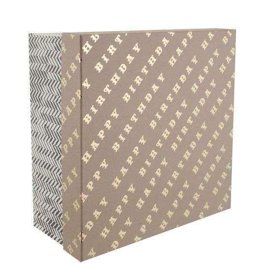 Make a great gifting impression with this Herringbone Gift Box from Spritz™. Ideal for birthdays, anniversaries and other special occasions, this paper gift box makes your gift look extra special. Adorable "Happy Birthday" text printed all over the lid of this paperboard box and the contrasting herringbone design add a classic touch and a surprise element to your gift. Toss your gift into this gift box and add some pompoms and confetti to delight your recipient. When not being used for gifting, this gift box can also be used for carrying or storing other items such as toys, books or knickknacks. Gender: unisex.